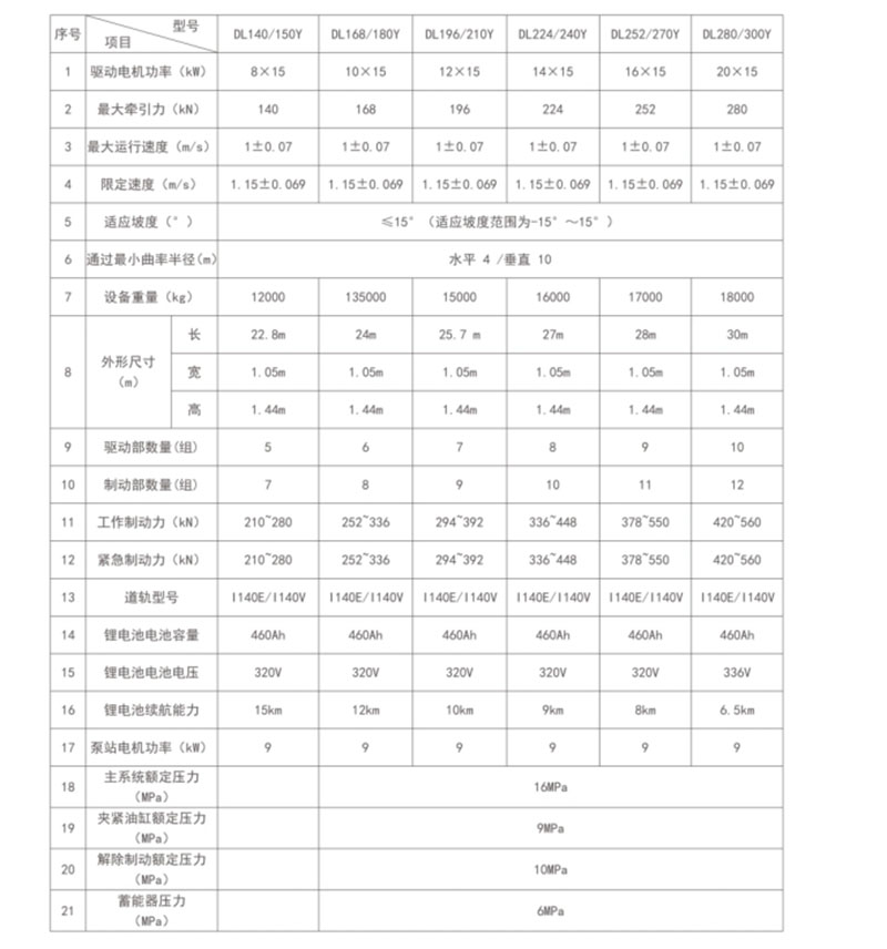 DL系列防爆鋰電池單軌吊機車,是一種以鋰電池為動力源,電力、油泵驅動電機繼而帶動機車運行的煤礦井下輔助運輸設備。其運行軌道采用德國工業(yè)標準的1140E型或I140V型工字型鋼,由鏈條柔性地固定于巷道頂部,機車運行承載輪卡入工字鋼兩側,無脫軌、掉道現(xiàn)象,制動停車是靠制動器彈簧夾緊軌道腹板實現(xiàn),動作方式為失效制動,運行安全、便捷更高 效。