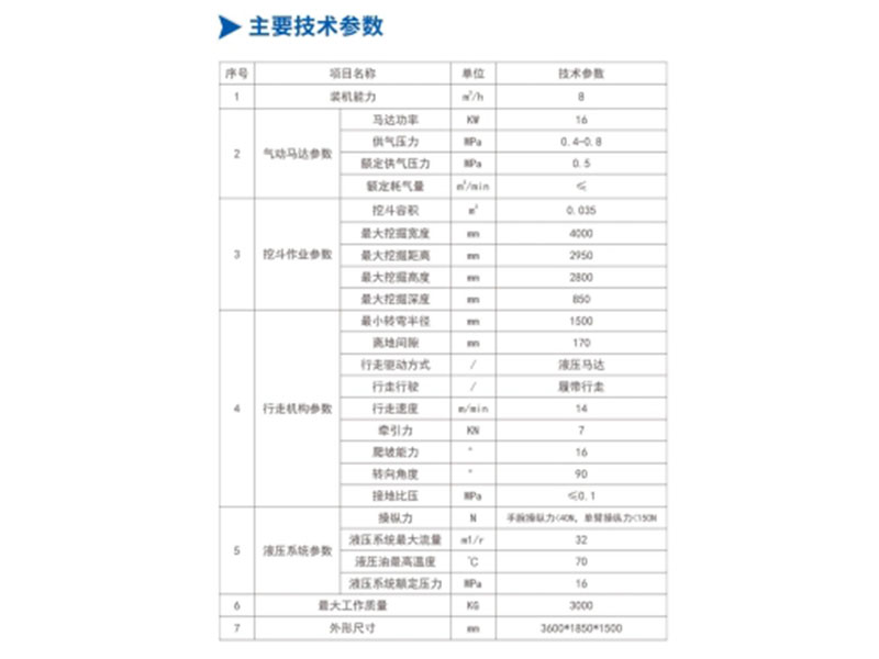 2.體積小移動(dòng)靈活,礦用氣動(dòng)巷道挖掘機(jī)的設(shè)計(jì)寬度以井下質(zhì)量標(biāo)準(zhǔn)中人行道寬度zui低0.8米為上限,滿足90%以上的變形巷道施工條件